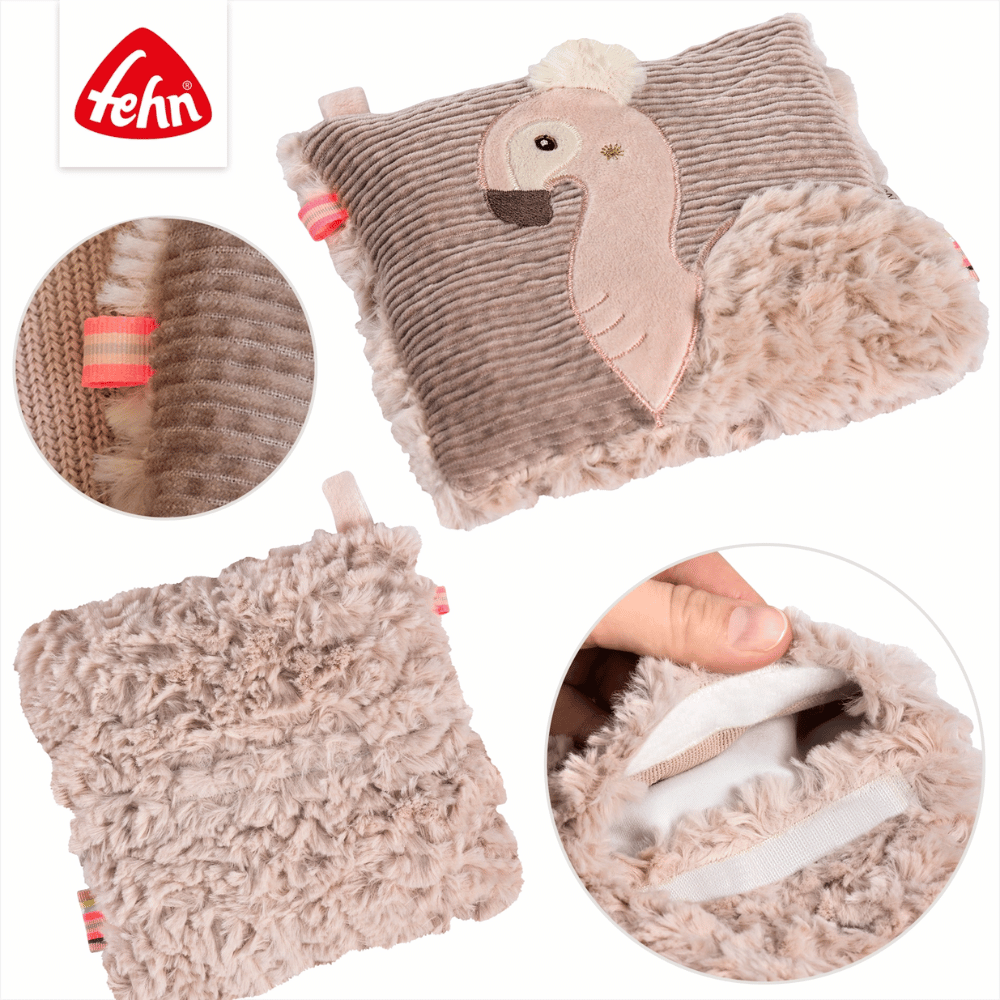 Het schattige kersenpitkussen Flamingo uit de Kameleon, Luiaard & Flamingo collectie is de perfecte knuffelvriend en veelzijdig inzetbaar. Dankzij de praktische klittenbandsluiting kan het binnenste eenvoudig verwijderd worden om te verwarmen in de oven of te koelen in de koelkast of vriezer. De kersenpitten passen zich optimaal aan het lichaam van de baby aan en geven gelijkmatig weldadige warmte of verkoeling af. Zo kalmeert en troost het kersenpitkussen je kleintje in bed, autostoel of kinderwagen.