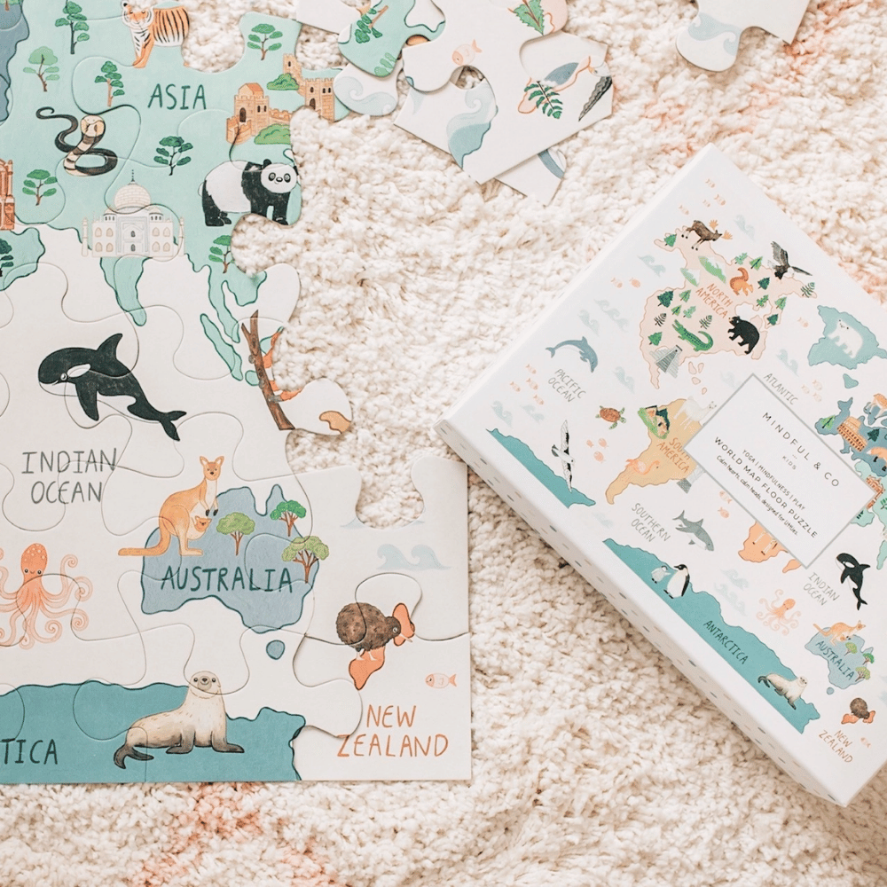 Stap in een wereld van rust, nieuwsgierigheid en verbinding met de vloerpuzzel van de wereld. Niet alleen een puzzel, maar ook een mindfulness-speeltje dat het brein prikkelt, het lichaam kalmeert en een gevoel van wereldwijde eenheid bevordert.