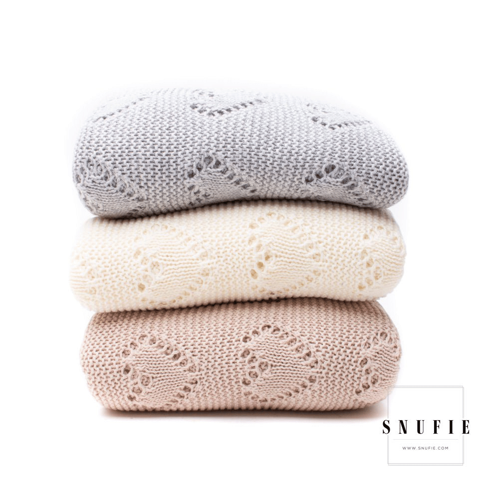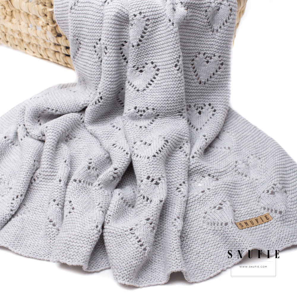 Dit prachtig gebreide babydekentje is perfect voor pasgeborenen. Met zijn elegante grijze kleur en lief hartjespatroon straalt het warmte en geborgenheid uit. Gemaakt van hoogwaardige materialen voelt de deken heerlijk zacht en comfortabel aan op de tere huid van je baby.