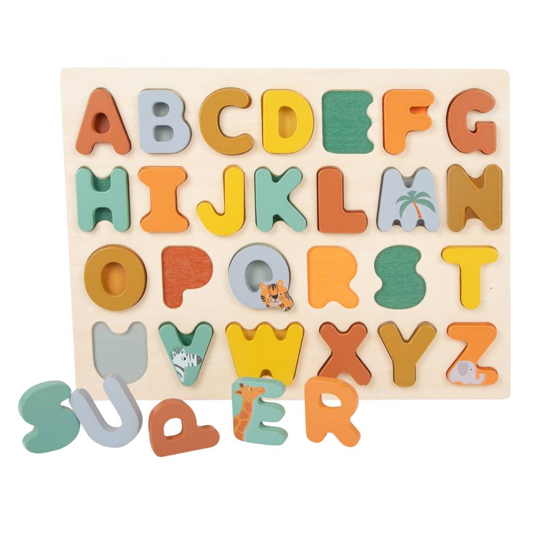 Met deze houten ABC-legpuzzel in trendy, zachte kleuren leren kinderen het alfabet met gemak én plezier. De 26 houten letters in reliëf zijn speciaal ontworpen voor kleine handjes: ze zijn stevig, goed vast te pakken en passen precies in de bijbehorende uitsparingen van de puzzelplaat.