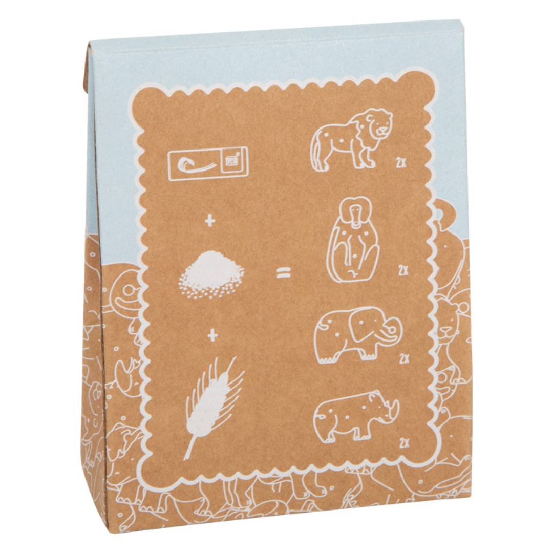 De koekjes worden geleverd in een hersluitbare vouwdoos van natuurlijk karton, zodat ze netjes op de plank kunnen worden gepresenteerd. Dankzij de eenvoudige illustraties op de verpakking begrijpen ook jonge kinderen die nog niet kunnen lezen direct wat er in de doos zit. Op de achterkant van het koekjespakket staat bovendien een visuele samenvatting, wat het spel leerzaam en interactief maakt.