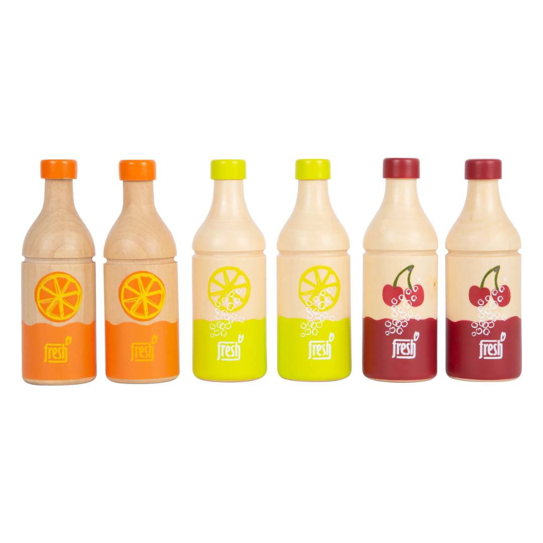 Inclusief 6 houten flessen – sinaasappelsap, kersenspritzer en limoenspritzer