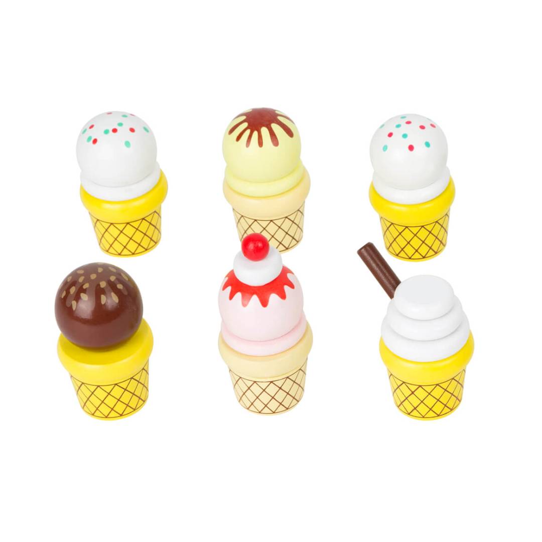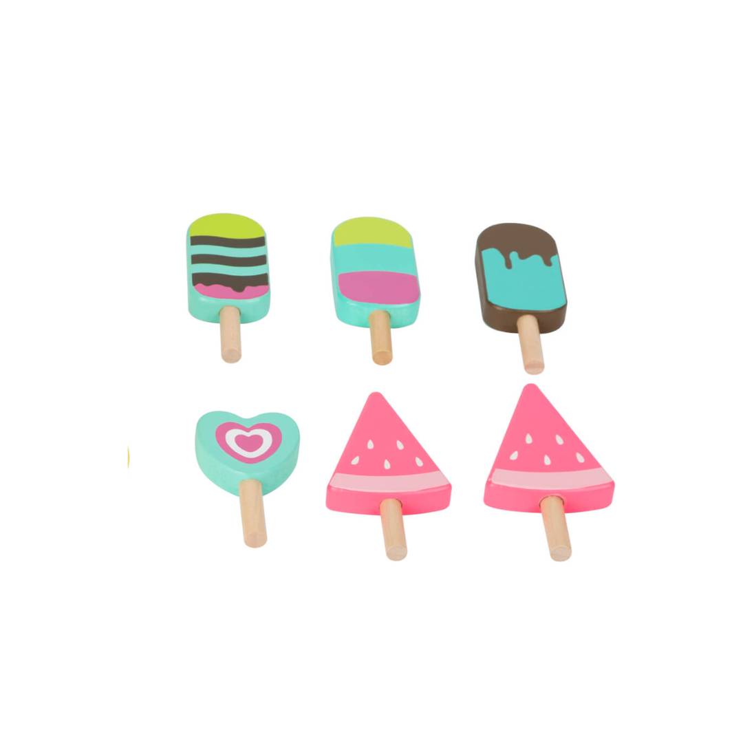De set bevat 12 verschillende soorten ijslolly’s en wafelijs die individueel kunnen worden samengesteld. Kinderen kunnen zo creatief spelen, sociale interactie oefenen en hun fijne motoriek ontwikkelen tijdens het serveren en samenstellen van de lekkernijen.