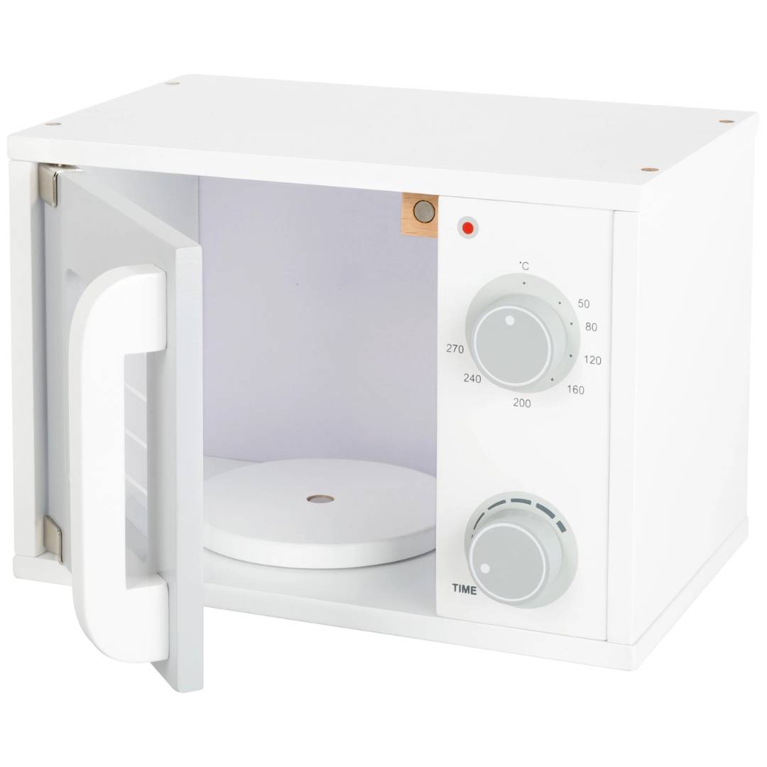 De temperatuur en tijd kunnen eenvoudig worden ingesteld via de draaiknoppen met klikgeluid, waardoor het rollenspel nog levensechter wordt. Kinderen leren zo spelenderwijs hoe een magnetron werkt en bootsen het dagelijks leven van hun ouders na.