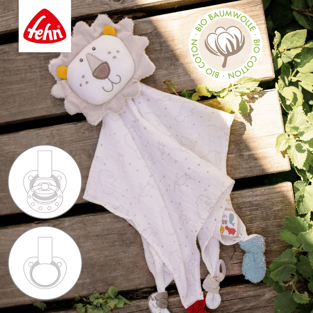 Het favoriete luxe leeuwendekbed uit de FehnNatur®-collectie is de perfecte combinatie van comfort, veiligheid en speelsheid. Dit multifunctionele vriendje is een knuffeldoekje, speenhouder en slaapmaatje in één en is de ideale metgezel voor baby’s – zowel thuis als onderweg.