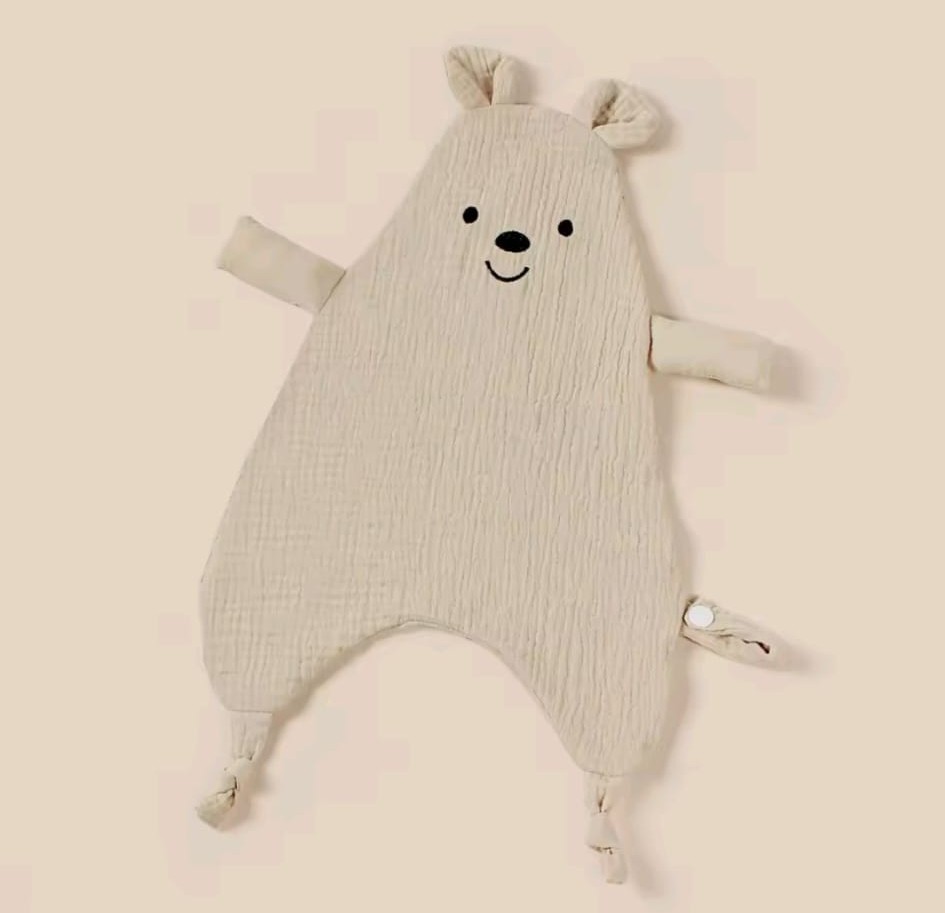 Speendoekje in zandkleur met een beer, van hydrofiele stof