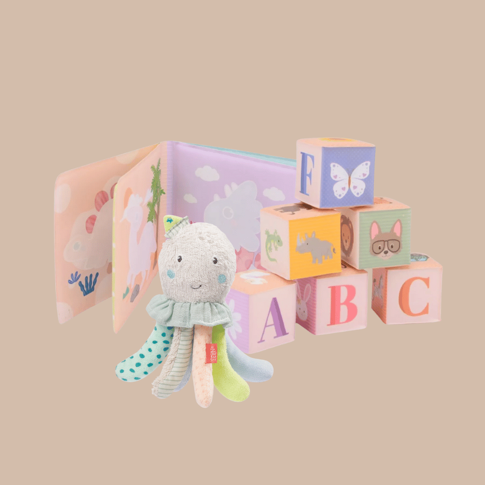 ๐งธ Pastel Dierenvriendjes Badset โ Inclusief zachte badblokken, een verkleurend dino badboekje en het vrolijke octopus badspeeltje voor eindeloos badplezier.
