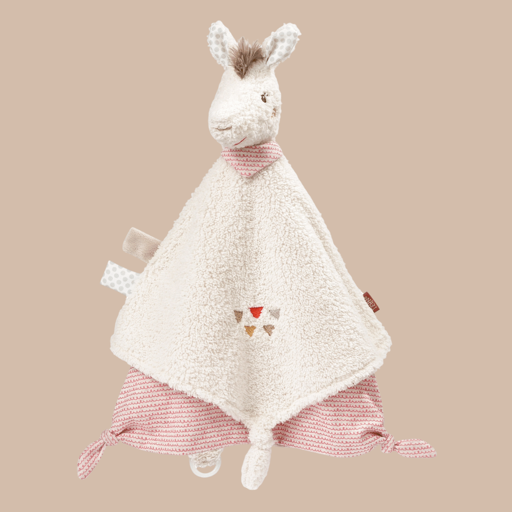 Kies uit een van onze zachte knuffeldoekjes met of zonder bijtring β zoals een konijn, schaap, kip, vos, zeepaard of leeuw. Elk doekje is heerlijk zacht en ideaal om mee te knuffelen, sabbelen of gerust te worden.