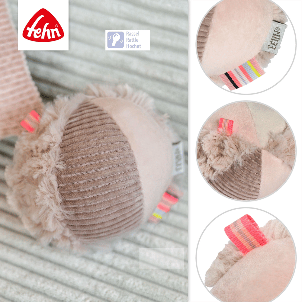 Rollen, grijpen, schudden – met de zachte stoffen bal Flamingo uit de Kameleon-, Luiaard- en Flamingo-collectie ontdekt je baby spelenderwijs de wereld. De vrolijke rammelaar in het binnenste wekt de aandacht zodra de bal beweegt, waardoor baby’s worden aangemoedigd om te kruipen, te grijpen en te gooien. De verschillende materialen bieden volop afwisseling voor de tastzin en maken elke ontdekkingstocht boeiend en leuk.