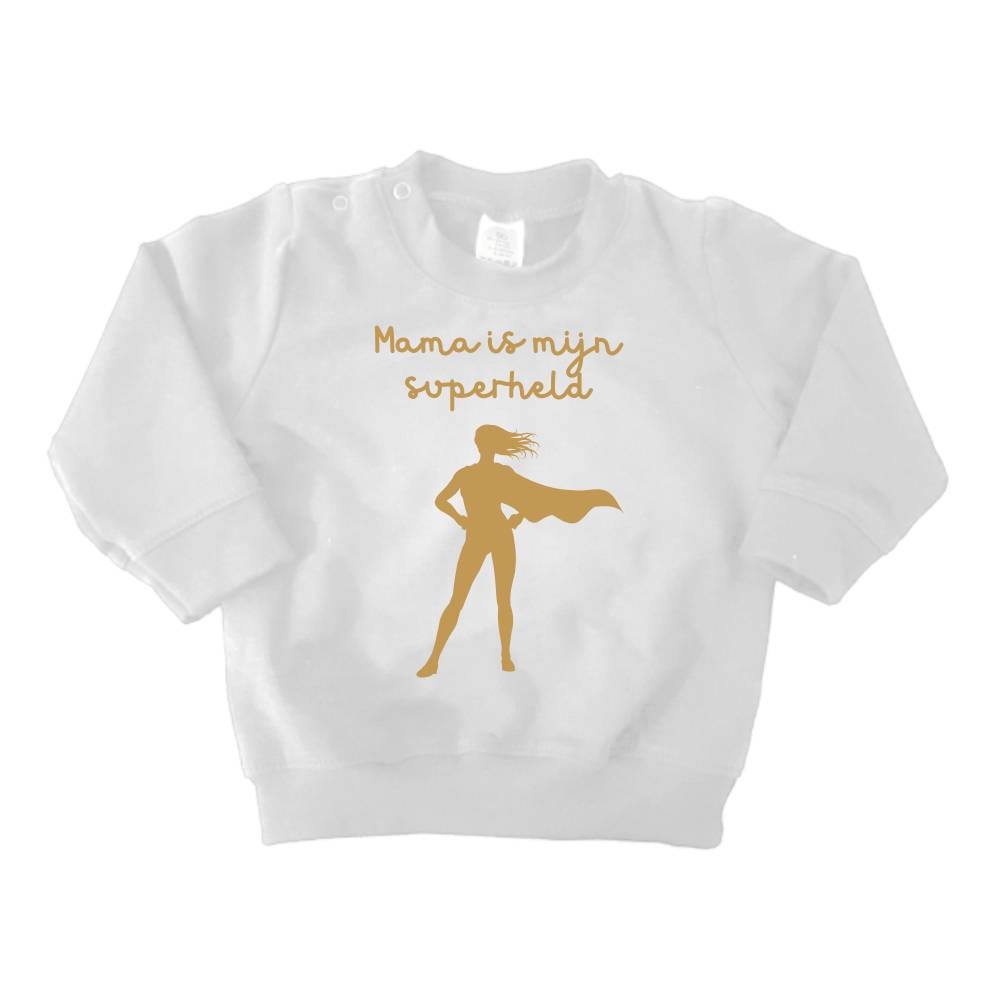 Sweater – ‘mama is mijn superheld’ – Wit – SuperFam