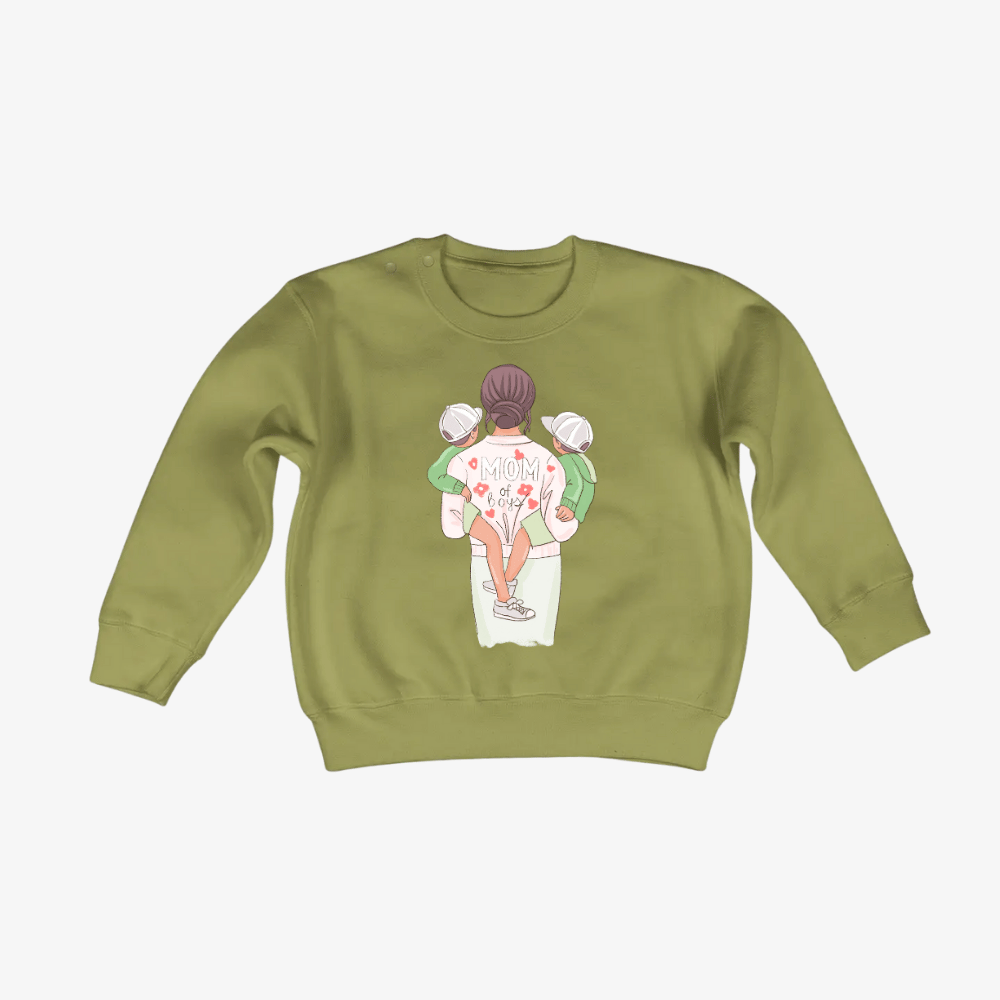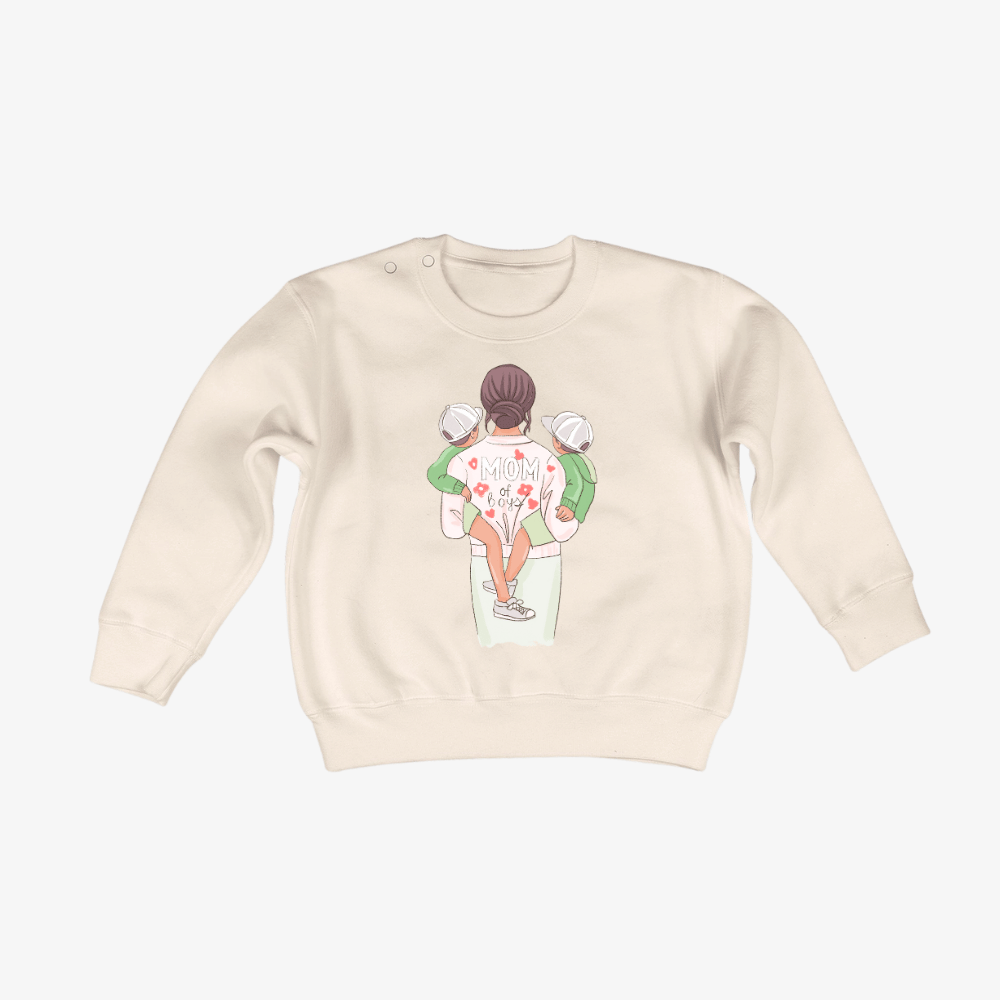 Op zoek naar een uniek en veilige sweater voor je kleintje of als origineel kraamcadeau? Deze zachte sweater met een mooie opdruk van mama met zoons is niet alleen comfortabel, maar ook een echte eyecatcher!